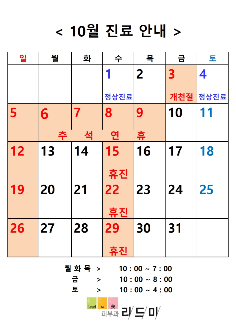 Á¦¸ñ 2025³â 10¿ù Áø·á ÀÏÁ¤ ¾È³»