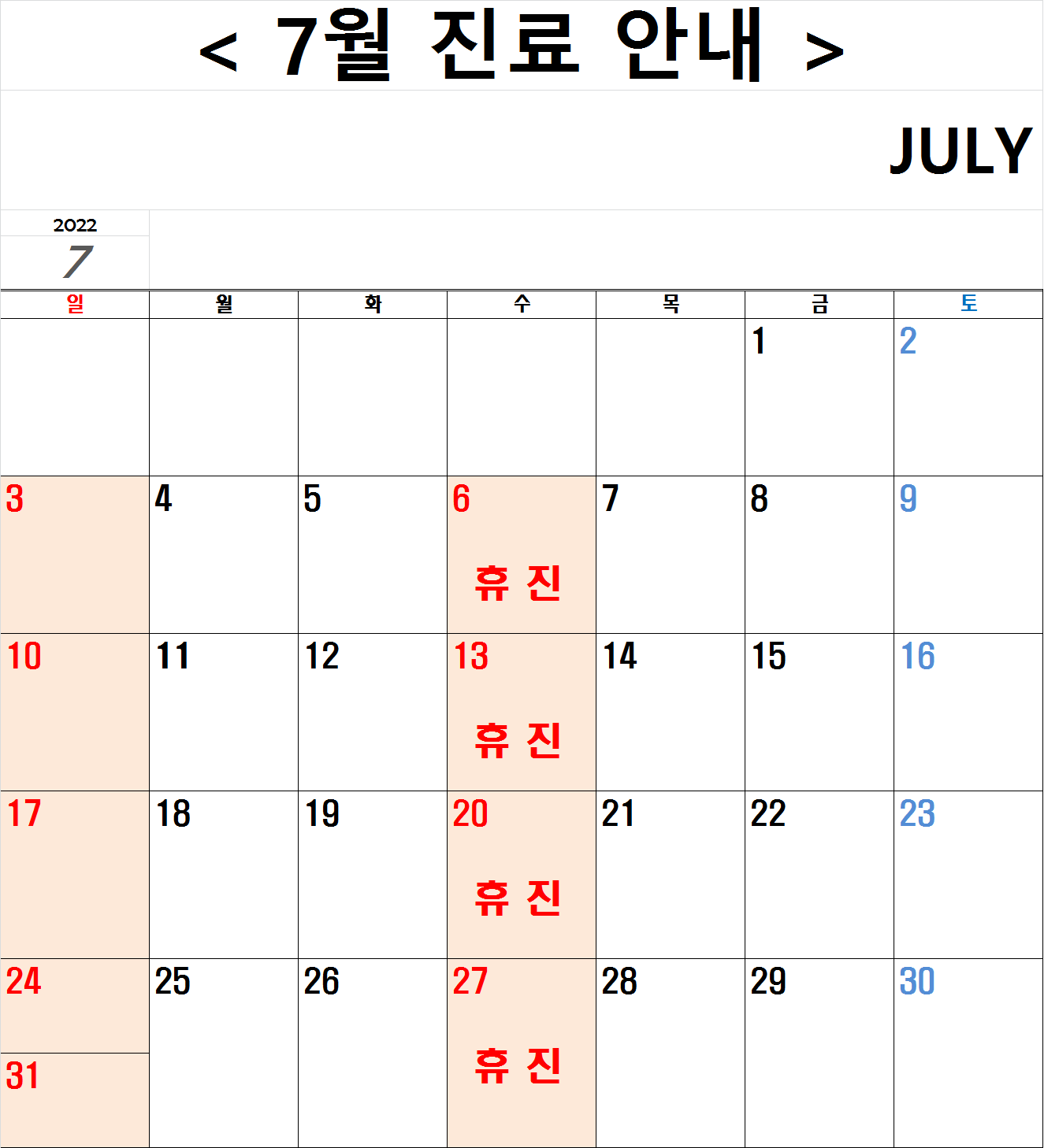 Á¦¸ñ 2022³â 7¿ù Áø·áÀÏÁ¤ ¾È³»